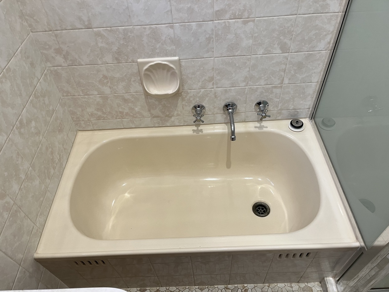 The bathroom encompasses glass shower screen, bathtub & quality tapware.