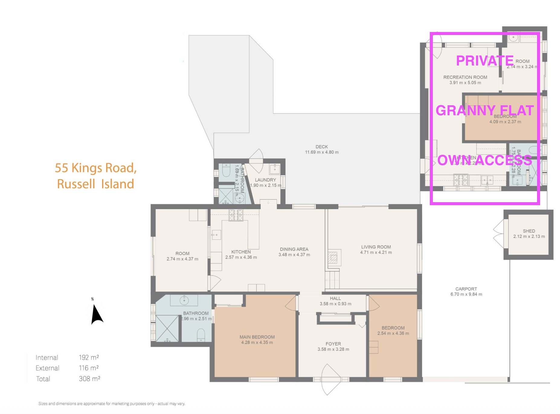 > Tiled queen sized room with aircon, glass sliding doors for separate entrance and flooded with natural light